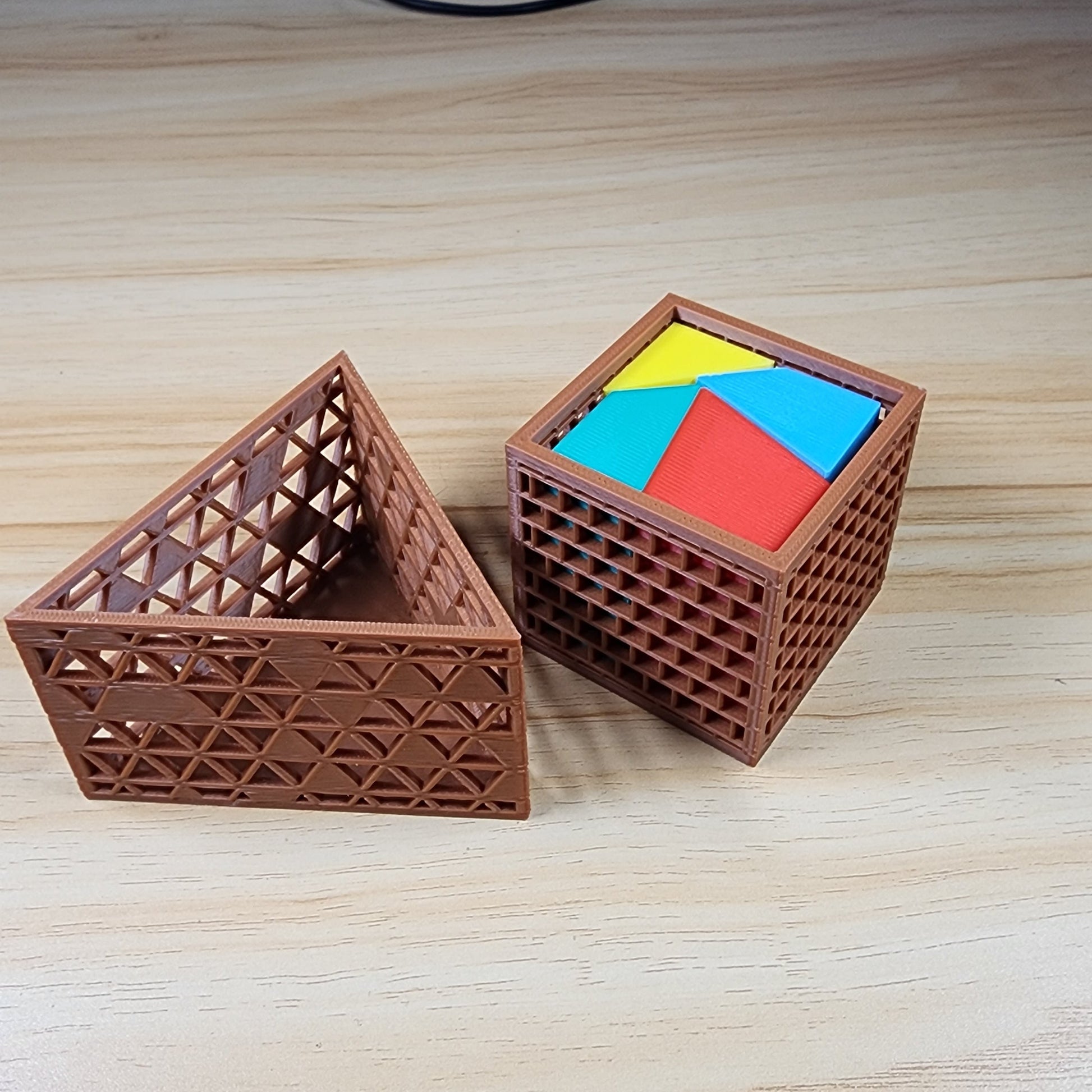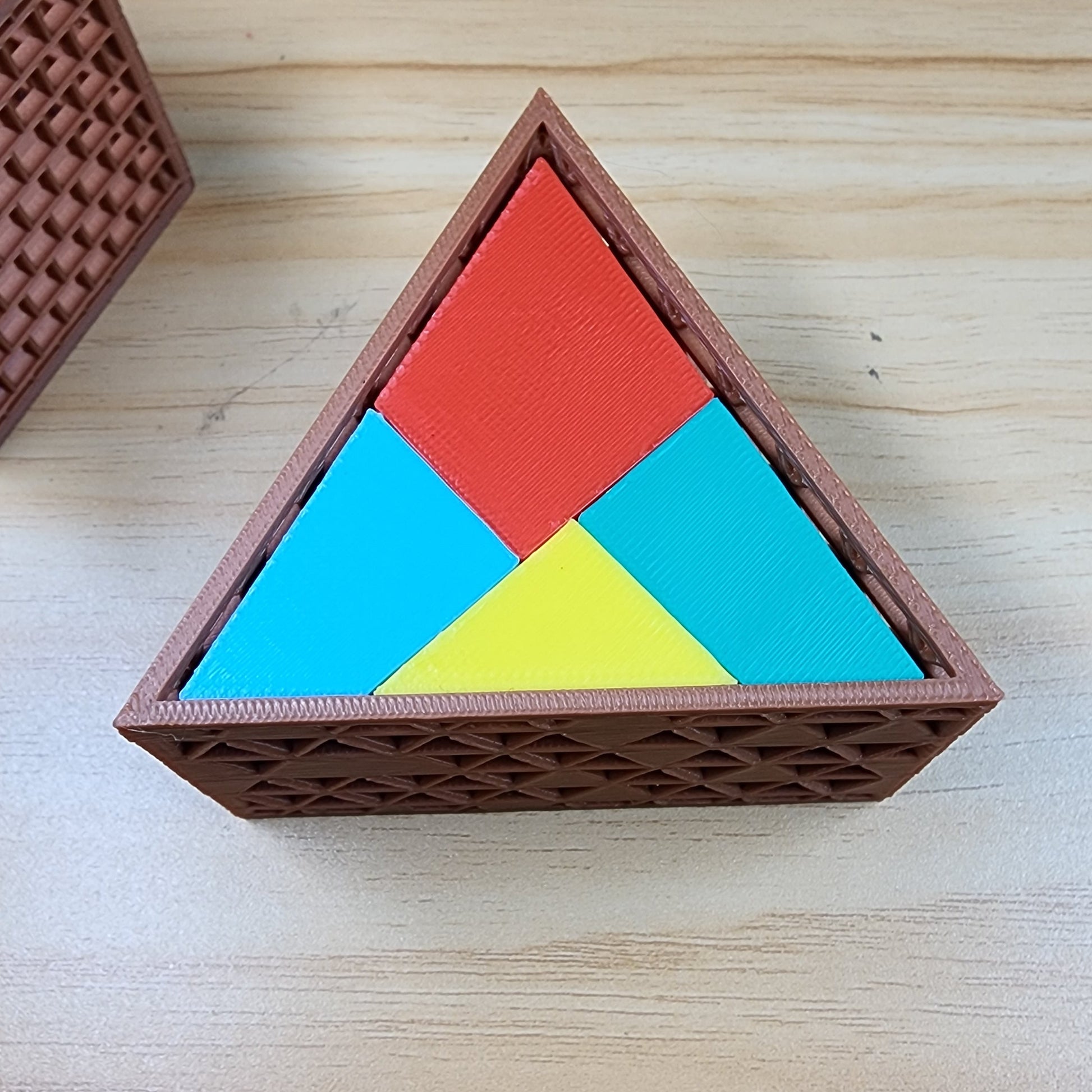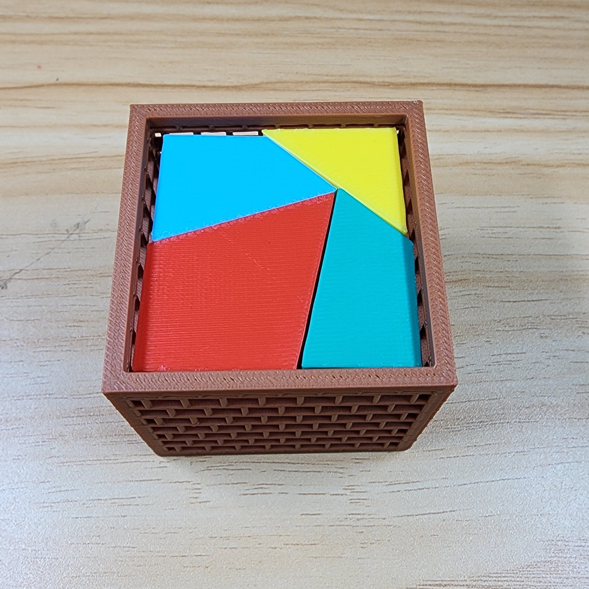 Inspirado en el famoso acertijo del mercero creado por Henry Ernest Dudeney a inicios del siglo XX, este set permite explorar una de las paradojas geométricas más fascinantes: