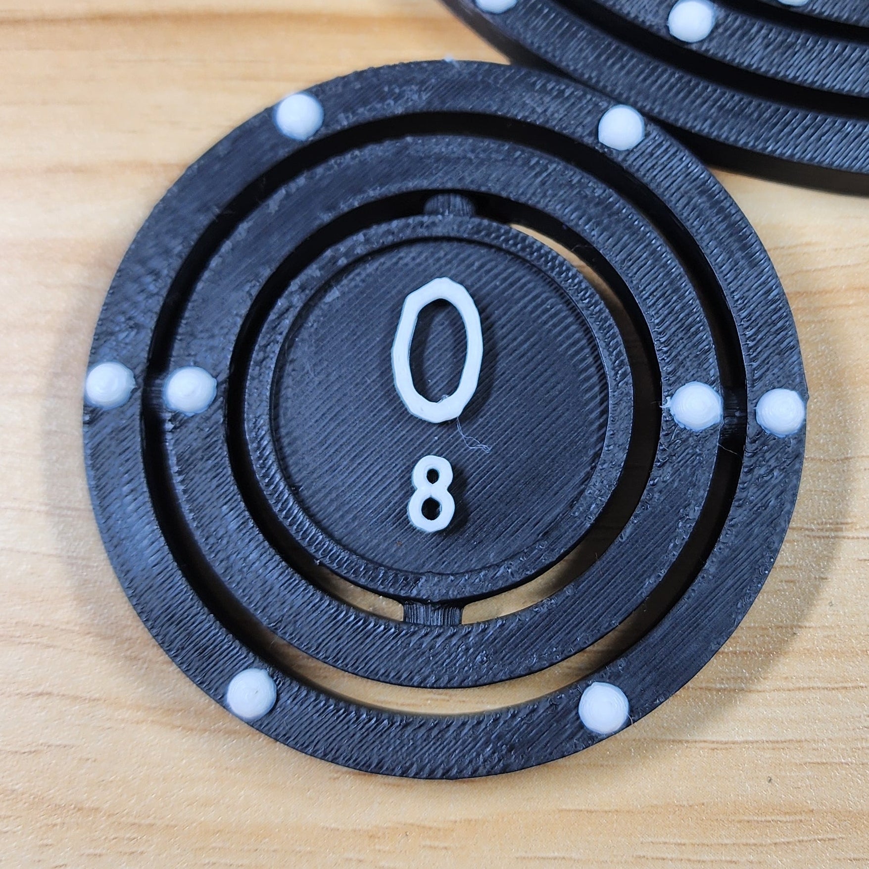 Las órbitas giran libremente sobre su eje, permitiendo observar la organización electrónica con claridad.