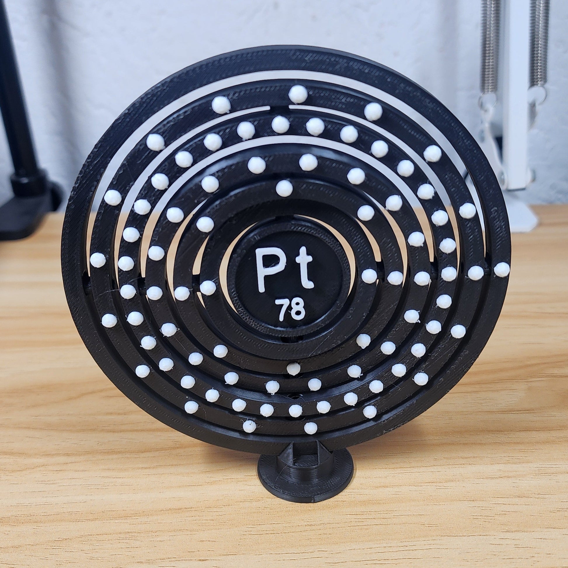 Las órbitas giran libremente sobre su eje, mostrando el aumento en la complejidad de los orbitales f presentes en los elementos más pesados.