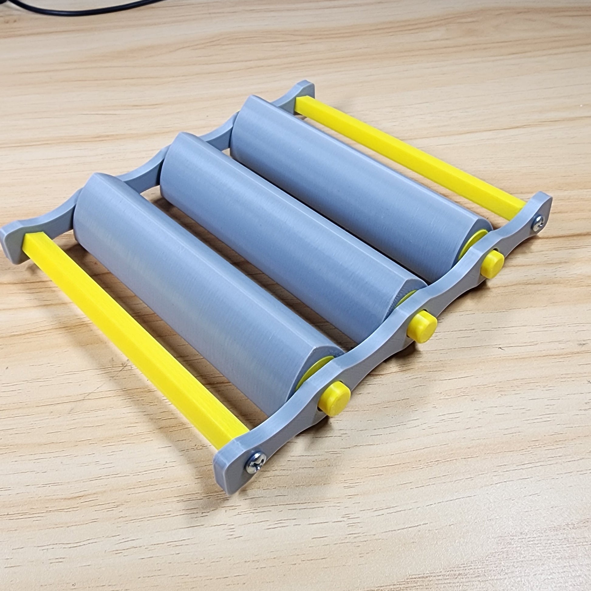 Compuesto por tres rodillos de Reuleaux unidos por un eje, este mecanismo permite observar cómo: